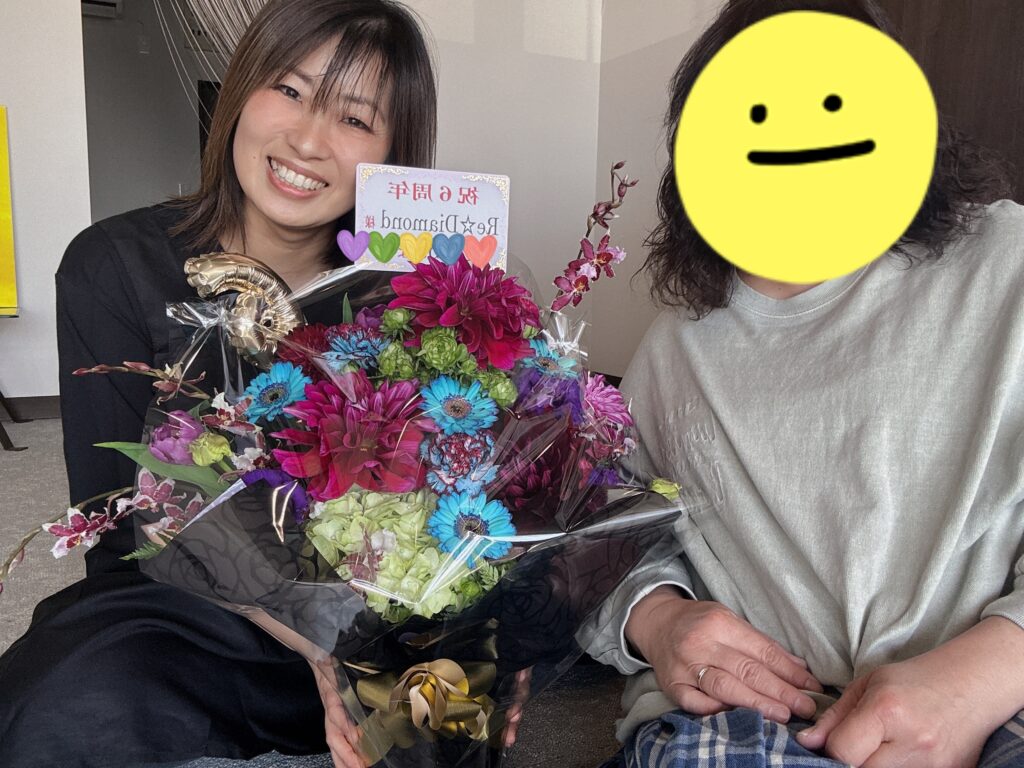 最後にお客様から頂いたお祝いのお花がうれしくて記念に撮ったお写真を💕